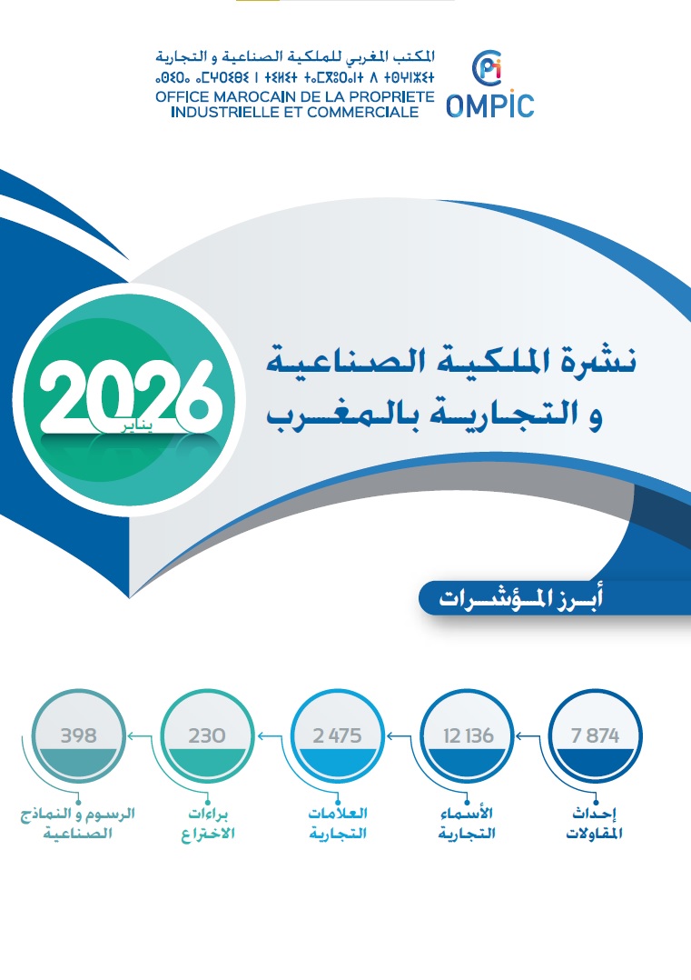 ينهي المكتب المغربي للملكية الصناعية والتجارية إلى علمكم أن نشرة الملكية الصناعية والتجارية لشهر يناير 2026 متاحة عبر الرابط : النشرة