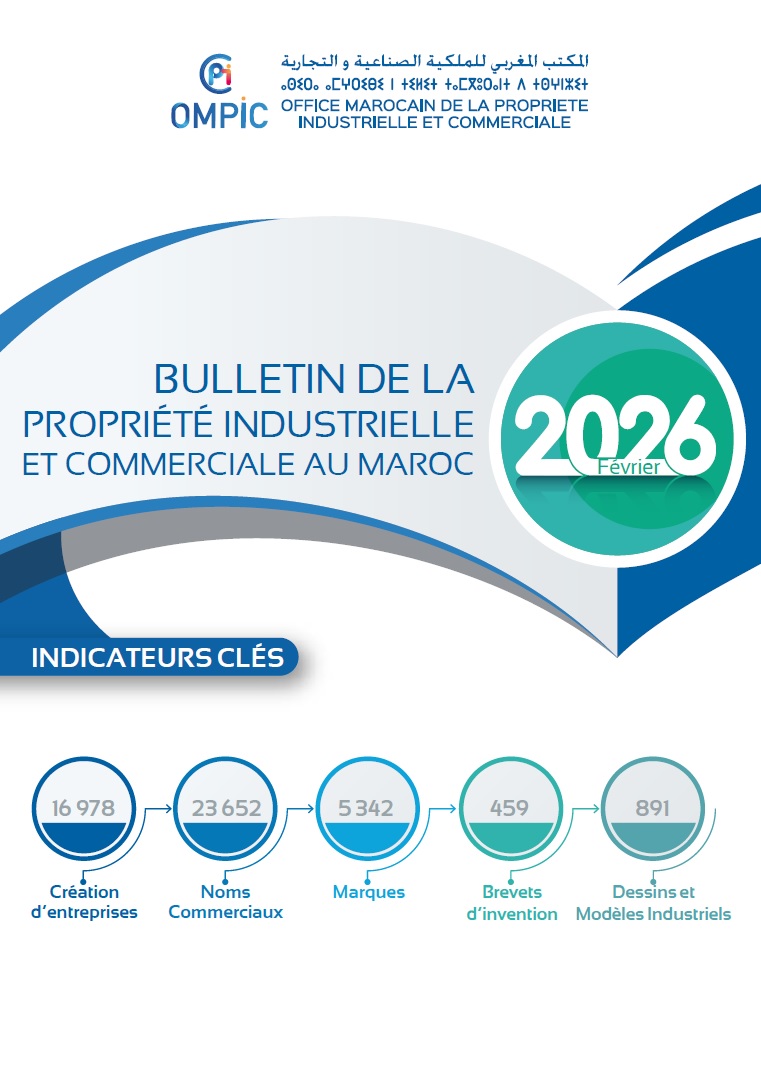 L'Office Marocain de la Propriété Industrielle et commerciale (OMPIC) a le plaisir de vous informer que le Bulletin de la Propriété Industrielle et Commerciale au titre de la période Janvier-Février 2026 est disponible et peut être téléchargé sur le lien suivant : Bulletin PIC